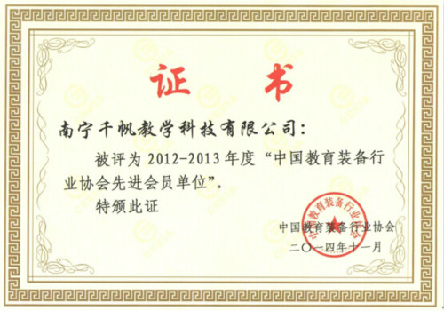 中國教育裝備行業(yè)協(xié)會先進(jìn)會員單位證書