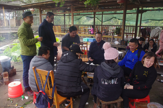 10:30分,我們正式抵達(dá)目的地“竹泉島山莊”,大家紛紛參與到午餐的準(zhǔn)備活動(dòng)中,生火、穿菜、刷油、配料、烤串……,大家紛紛施展各自拿手絕活,忙得不亦樂乎,不一會(huì)大家親手烤制的肉串就飄出陣陣誘人的香氣。太陽很應(yīng)景在此刻從云層中鉆出,金色的光芒透過樹蔭照在每個(gè)朝氣蓬勃的笑臉上。